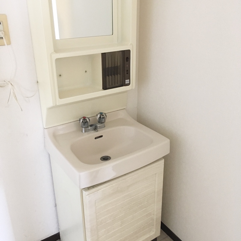 前の洗面化粧台は築28年もので、水栓部分に水が溜まりカビが生え掃除が大変でした。。
