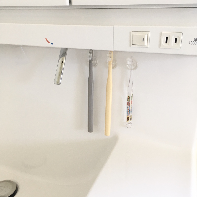 浮かせる収納(ハンドディスペンサー、歯ブラシ)