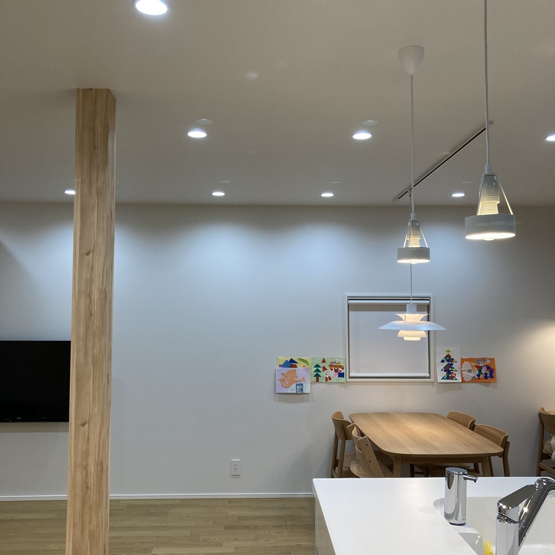 中でもLDK+和室(洋室仕上げ)については調光調色タイプのダウンライトにしました。