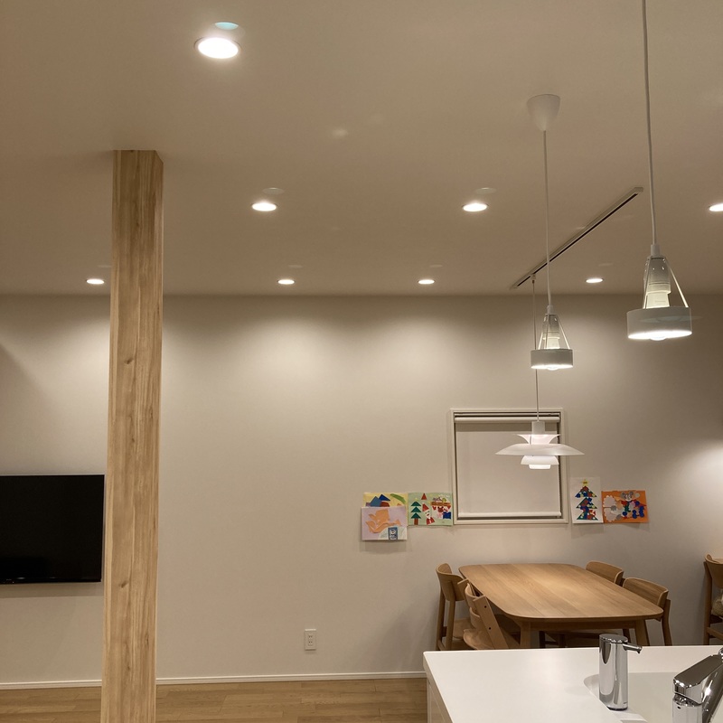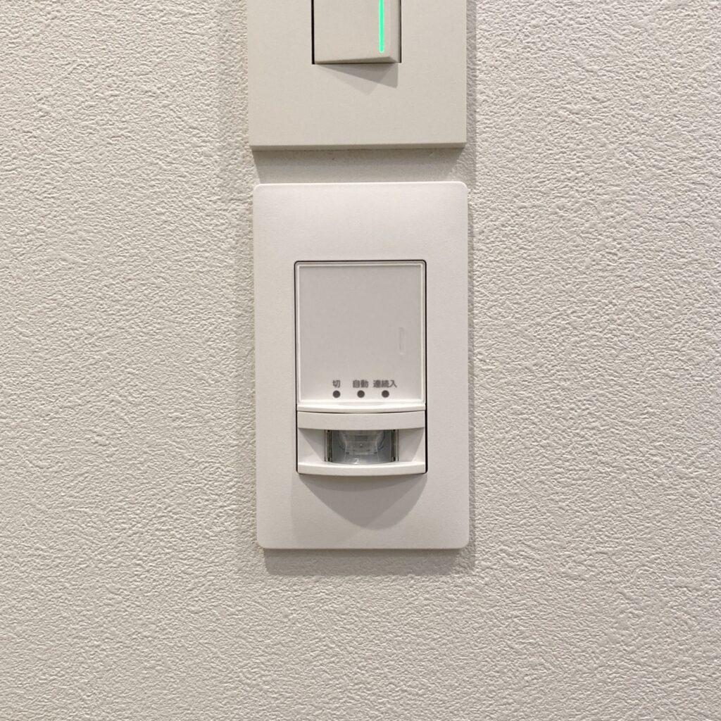 ちなみに2枚目の玄関ホールはダウンライトの人感センサーで点灯も良いが、長時間作業することも想定される場合は壁センサータイプにして「連続点灯(つけっぱなし)」出来た方が良いとのことで手元で切り替えられる壁センサーを採用しました!
