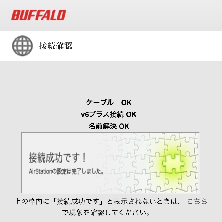 改めてバッファロー接続確認ページで、通信を確認したところUSEN V6プラスへの接続成功し、切り替え完了。