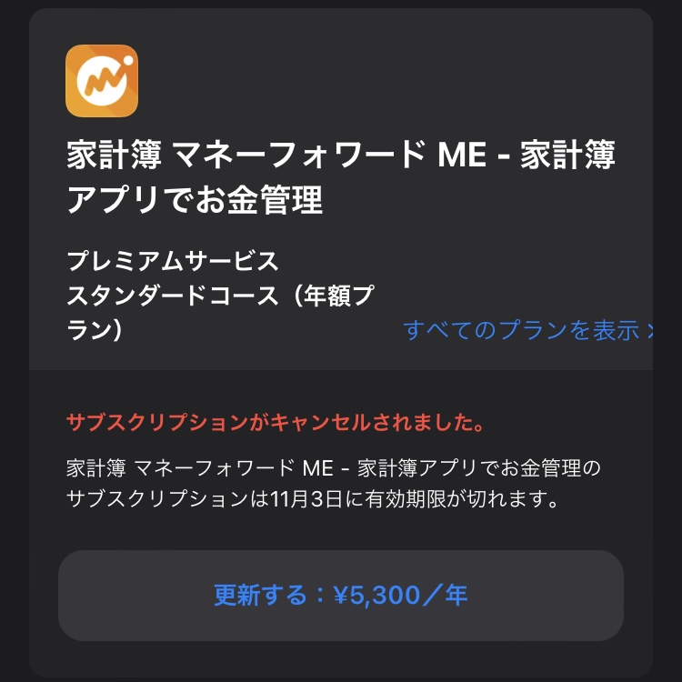 マネーフォワードMEはいつから無料になる?(App Storeでサブスク解約)